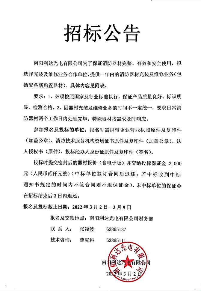 消防器材充裝及維修業(yè)務合作單位招標